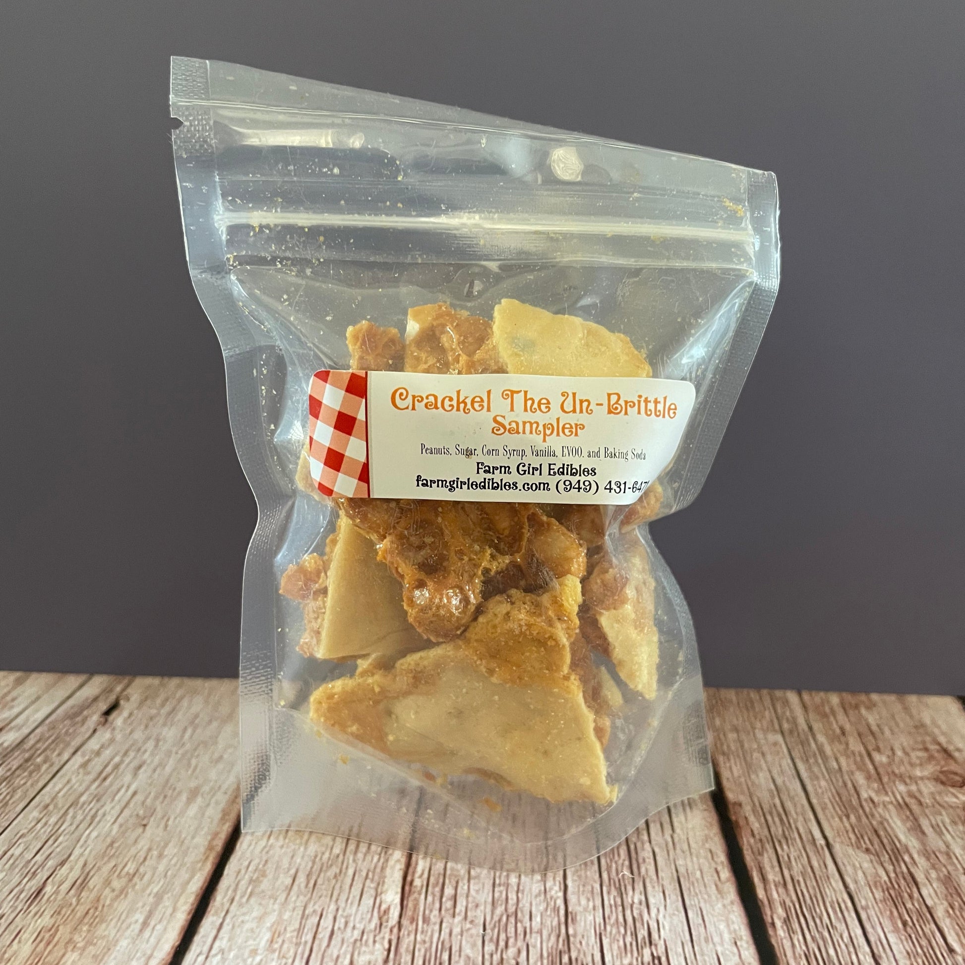 This 2oz bag of Edible Farm Girls signature honeycomb peanut candy — lovingly called Crackel — is perfect for when you want a little indulgence without the guilt. Light, airy, and perfectly crisp, it’s a small-but-satisfying bite of nostalgia. If you're the type who can't stop at one... this bag was made for you.